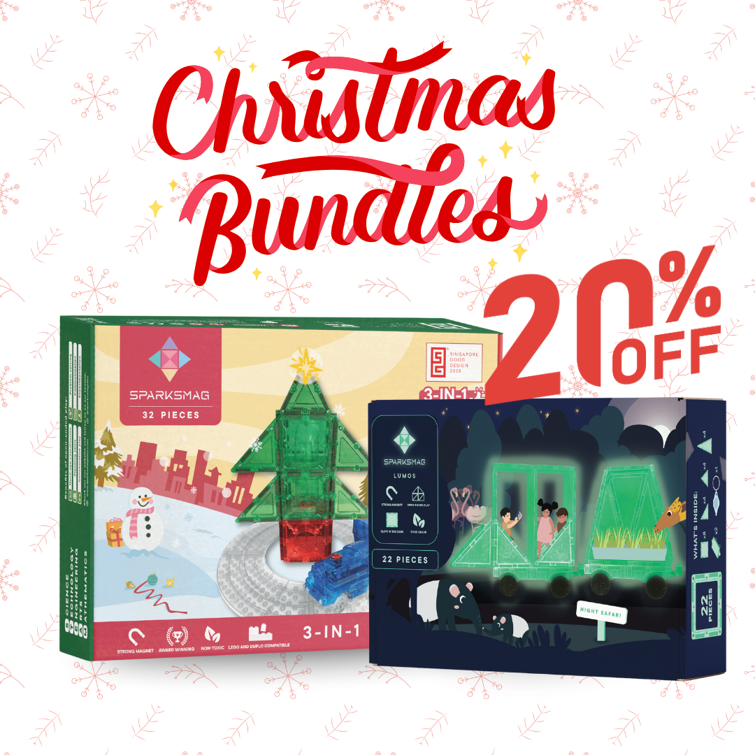 Spark your child’s creativity with the SparksMag Creative Glow Discovery Bundle, combining two of our most loved sets: the 32 PCS Best Loved Trio 3-in-1 Discovery Set and the 22 PCS Lumos Glow-in-the-Dark Magnetic Tiles.