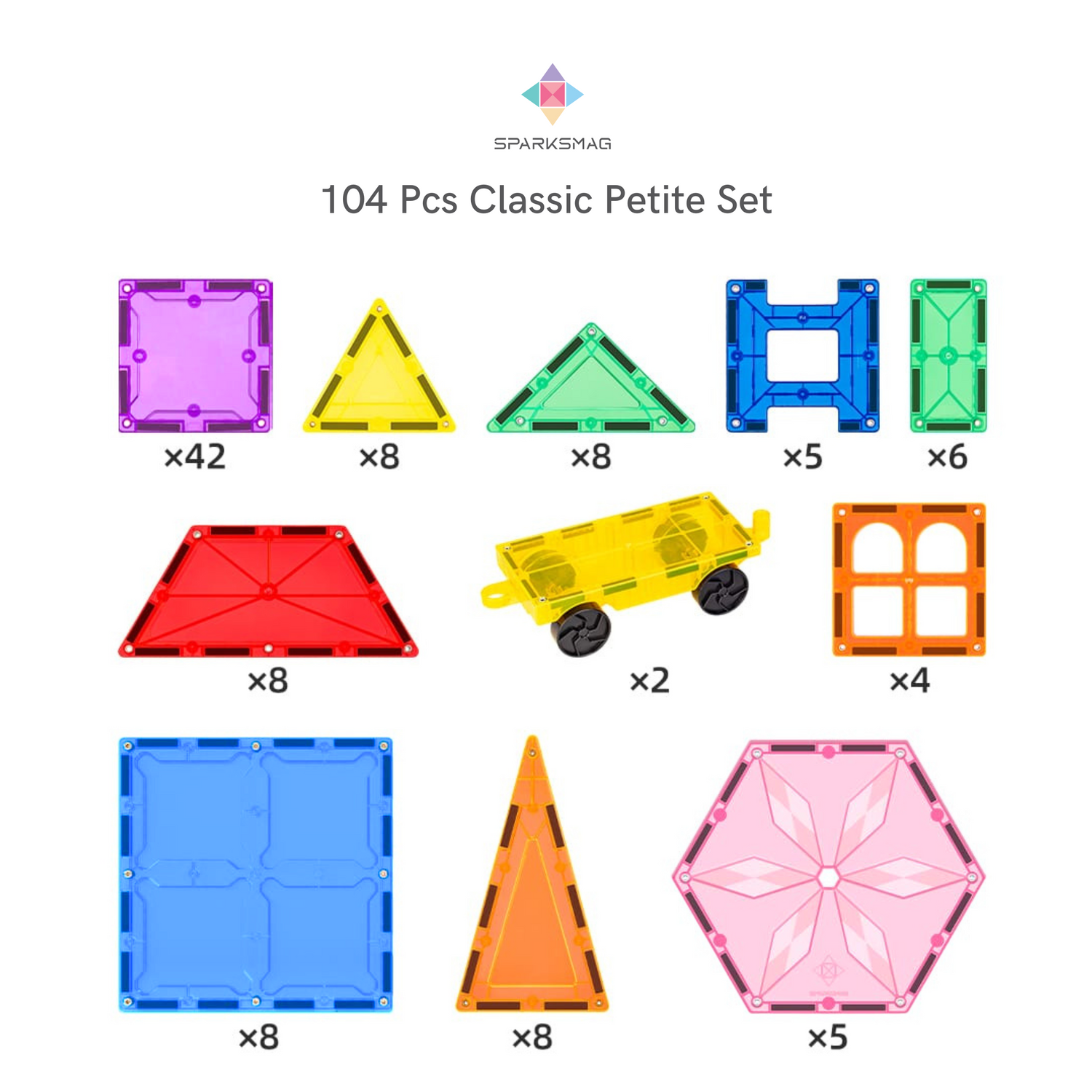 SparksMag Petite Magnetic Tiles Set (104 PCS) – Creative Starter Building Set | STEM Construction Toy for Kids