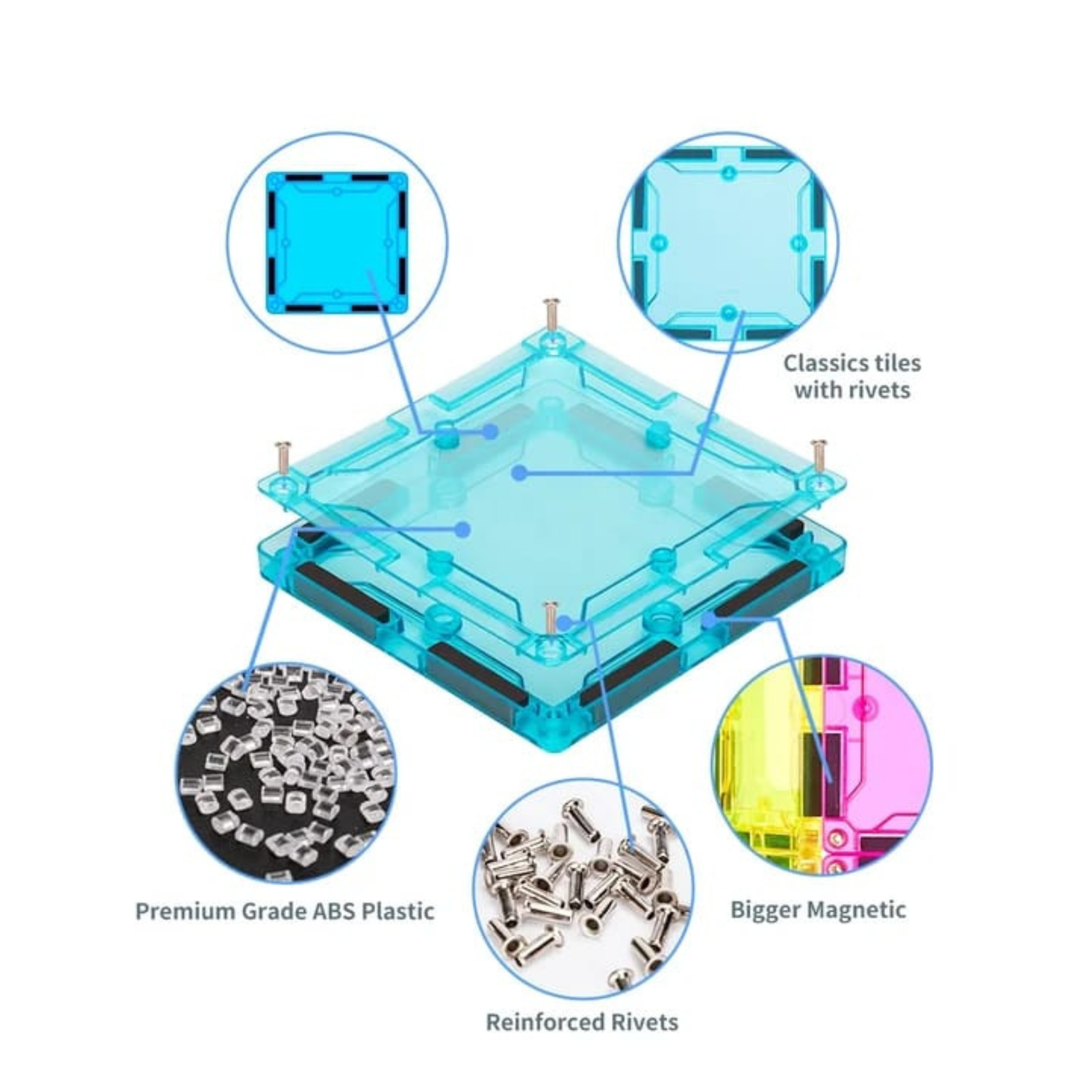 Each SparksMag tile is reinforced with rivets to securely enclose magnets for added safety. Strong magnetic connections allow children to build larger, sturdier structures with confidence.